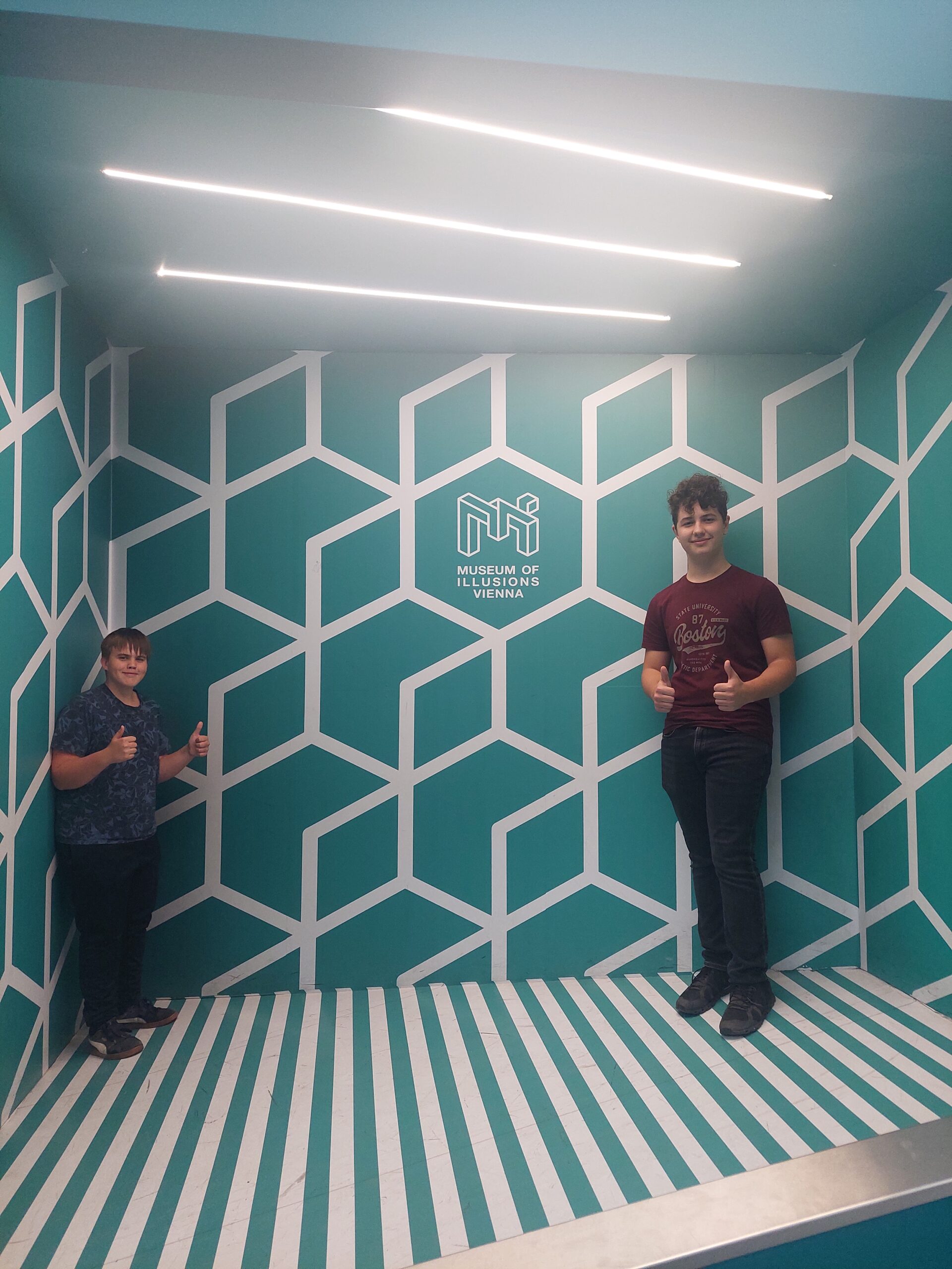 Nach einer langen Anreise begaben sich die beiden Klassen zuallererst in der Wiener Innenstadt im „Time Travel“ auf Zeitreise und waren begeistert vom 4-D-Kino. Im Museum der Illusionen entstanden etwas später etliche „unglaubliche“ Fotos. Den ersten Abend ließen die beiden Klassen bei einem gemütlichen Essen im Hardrock Cafe ausklingen. Extra Challenge: Das Essen sollte in englischer Sprache bestellt werden. „Eine spannende andere Art des Bestellens“, resümiert Jakob aus der 4b.